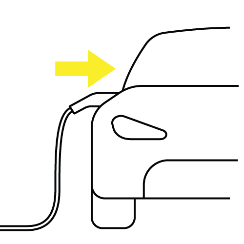 Stecken Sie das Ladekabel (Typ 2) zuerst in Ihr Fahrzeug.